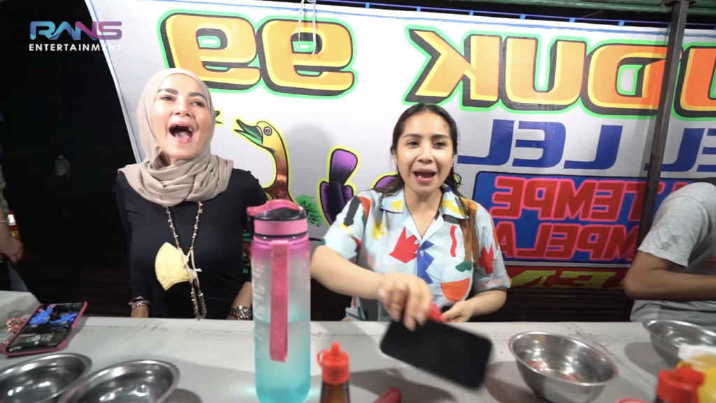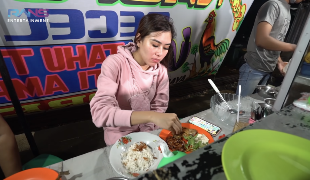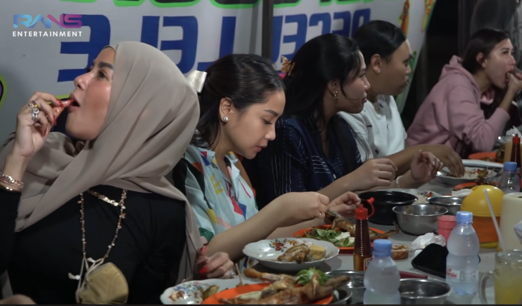Nagita Slavina terlihat memesan pecel lele, pecel ayam, tahu, kol goreng, dan sambal. Bahkan Olla Ramlan memesan petai.
