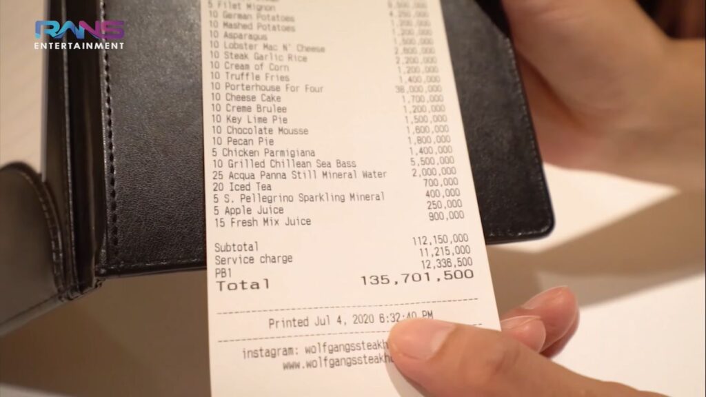 Fuji dan teman-temannya memesan banyak makanan, seperti Crab Cake yang terkenal di Wolfgang's seharga Rp1,1 juta. Kemudian mereka juga memesan satu porsi Ribeye Steak seharga Rp1,1 juta.